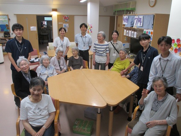 東海大学付属市原望洋高校ボランティア部の皆様が遊びに来てくれました。先生や生徒さんの朗らかな笑顔を見て、入居者様の緊張も薄れ、すぐに打ち解けることができました。質問タイムにミニゲーム、一緒に食べたおやつタイムは、いつも以上に美味しかったです。