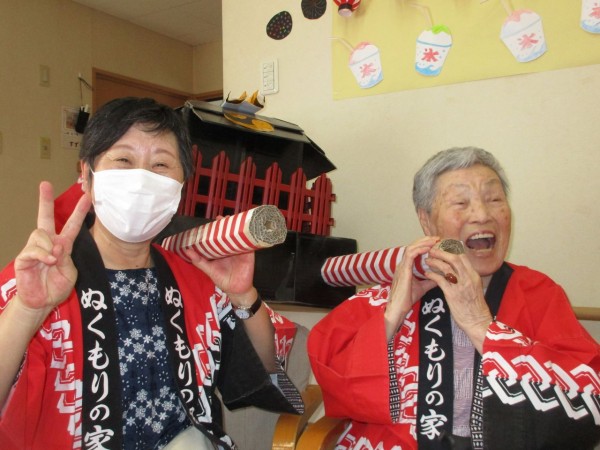 夏祭りを行いお神輿を担ぎ賑わいました。盆踊りも行い皆様、上手に踊られとても楽しまれていらっしゃいました。
