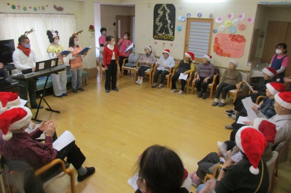 恒例のクリマスパーティーが行われ、サンタクロースより素敵なプレゼントが届きました。クリスマスケーキを召し上がったり、クリスマスソングを皆様で熱唱し盛り上がりました。